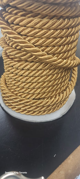 Gold Decorative Rope is an ornamental textile trim applied to finish an edge of a home decor project. Use along the bottom edge of furniture, add decoration to drapery panels, valances, table skirts, throws, pillows, bolsters or ottomans.